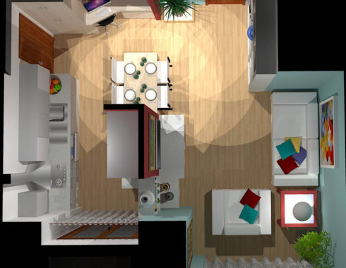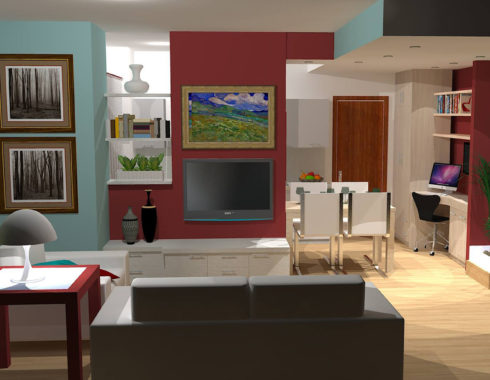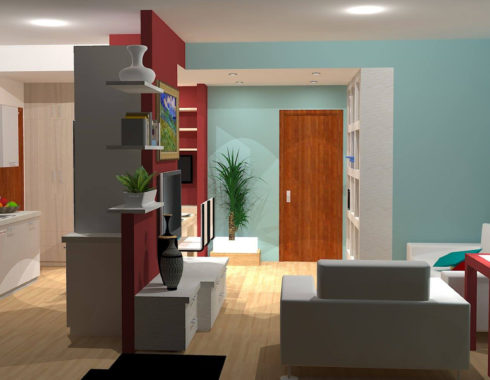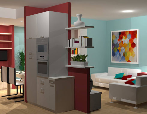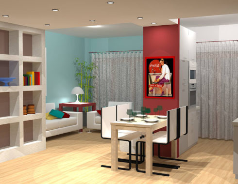 Organizzare gli spazi è fondamentale per ottenere il massimo del comfort anche in pochi metri quadrati. Questo piccolo appartamento nel centro città si presta perfettamente alla risistemazione degli ambienti, con l’ausilio di una sottile parete divisoria che divide la cucina dalla zona living. Le mura di diversi colori distinguono e caratterizzano le zone (ingresso, salotto, piccola zona studio e cucina con tavolo allungabile).