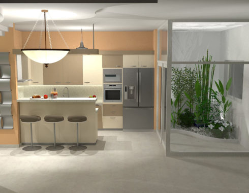 La zona giorno è quella più vissuta all’interno di una casa, dove si accolgono amici e parenti e dove si svolge la maggior parte delle attività familiari. Con piccoli accorgimenti è possibile moltiplicare gli spazi e rendere la dimora ancora più confortevole. Grazie a un comodo piano snack la cucina presenta più piani di appoggio, mentre l’antiestetico pozzo luce si trasforma in piccolo giardino interno che, grazie a vetrate a tutta altezza, diventa punto di forza e dà carattere all’abitazione.